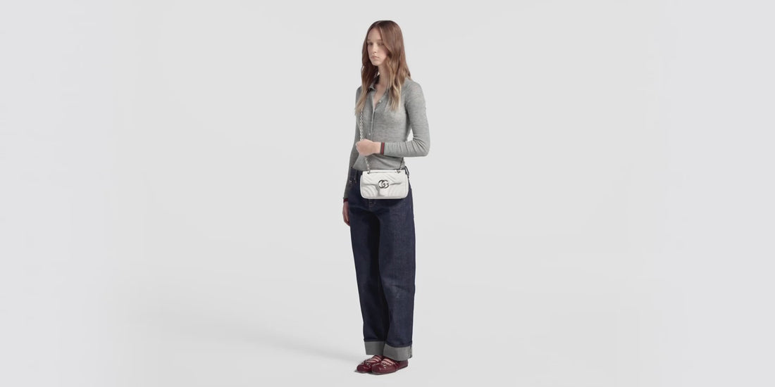 Crafted from premium white leather, this GG Marmont small shoulder bag offers timeless elegance, iconic design, and versatile styling for day or evening wear